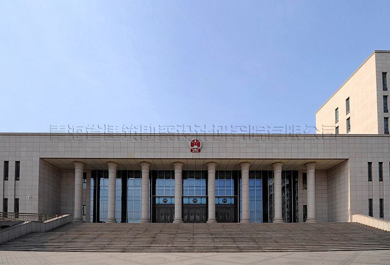 青海省高級人民法院審判辦公樓工程位于西寧市城北區(qū)柴達木路與西站二巷道路交叉口西南角,總用地面積60.27畝,用地內布置審判辦公樓、法官培訓中心、干警高層住宅樓及配套鍋爐房等項目。審判辦公樓總建筑面積32671.00m2,地上層數為8層,地下1層,建筑高度31.80m。主體建筑分為辦公用房和審判用房兩個部分。建筑一層及局部地下室設汽車庫、設備用房、檔案室和羈押用房。辦公部分二至八層為法院行政公共用房,其中二層設門廳、多功能會議廳,頂層設大會議室、視頻會議室、閱覽室、健身房等,其他樓層設辦公及部門會議室。辦公用房設置滿足規(guī)范《黨政機關辦公用房建設標準》的要求。依據《人民法院法庭建設標準》審判用房布置在辦公樓東南側,相對獨立,其中設大法庭1個,中法庭2個,小法庭8個,另設立案大廳、信訪大廳、候審大廳及法官和參與庭審活動的律師、證人、公訴人等人員的配套服務用房。審判法庭布置重點解決法庭內各種流線的要求,即法官通道、羈押通道、旁聽觀眾通道,三者獨立又互相聯系的關系。