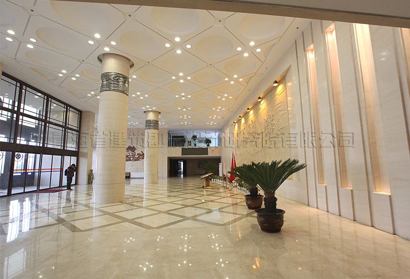青海省高級人民法院審判辦公樓工程位于西寧市城北區(qū)柴達木路與西站二巷道路交叉口西南角,總用地面積60.27畝,用地內布置審判辦公樓、法官培訓中心、干警高層住宅樓及配套鍋爐房等項目。審判辦公樓總建筑面積32671.00m2,地上層數為8層,地下1層,建筑高度31.80m。主體建筑分為辦公用房和審判用房兩個部分。建筑一層及局部地下室設汽車庫、設備用房、檔案室和羈押用房。辦公部分二至八層為法院行政公共用房,其中二層設門廳、多功能會議廳,頂層設大會議室、視頻會議室、閱覽室、健身房等,其他樓層設辦公及部門會議室。辦公用房設置滿足規(guī)范《黨政機關辦公用房建設標準》的要求。依據《人民法院法庭建設標準》審判用房布置在辦公樓東南側,相對獨立,其中設大法庭1個,中法庭2個,小法庭8個,另設立案大廳、信訪大廳、候審大廳及法官和參與庭審活動的律師、證人、公訴人等人員的配套服務用房。審判法庭布置重點解決法庭內各種流線的要求,即法官通道、羈押通道、旁聽觀眾通道,三者獨立又互相聯系的關系。